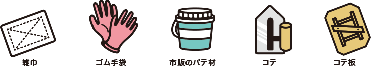 ④欠けている部分や穴がある場合は、パテ材を埋め込む。