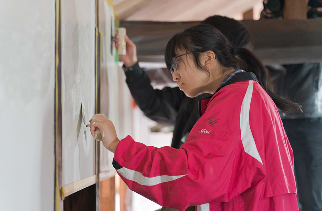 最初は細かい部分を塗るところができなかったのですが、だんだんできるようになるのが嬉しくて夢中になっていきました。また、事前に効能等を教わっていたので、ただ塗るだけではなく、今後使われていくイメージをしながら塗っていけたので楽しかったです。塗りながら集中すると無言になっていったのですが、その中でもスタッフの方としっくいのことや全然関係ないことまでお話できたのも、とてもいい時間でした。